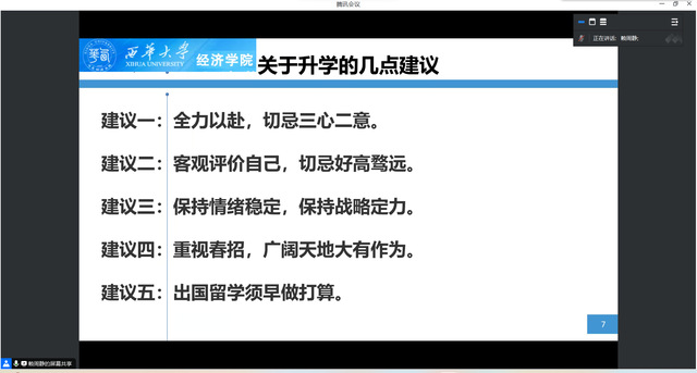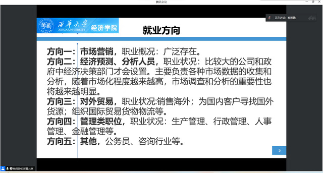 为帮助毕业生提前做好毕业规划,对毕业生进行就业思想工作指导,9月21日,betway必威西汉姆联经济贸易系于线上开展了2024届毕业生专业指导会。betway必威西汉姆联经济贸易系主任左世翔、betway必威西汉姆联老师赖周静、袁春梅、支宏娟、石华平以及全体2024届经济贸易系学生参加会议。