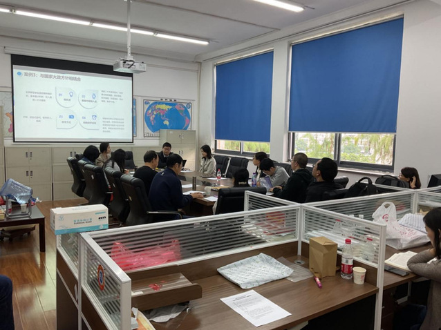 两位青年教师做完汇报交流后,王蕊老师进一步围绕如何围绕一门课进行课程思政示范课建设进行分析。她指出,首先课程思政应当贯穿价值引领、能力养成和知识传授三个教学目标;其次在备课过程中应有意识地选取课程思政相关内容,培育“有温度的人才”;第三应采取可量化指标考察思政课程融入教学活动的深度。此外,王蕊老师还结合学校课程思政示范课申报流程等相关事项做了说明。