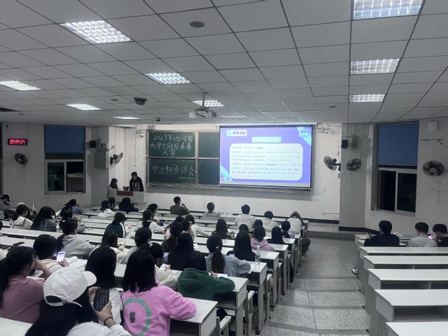 紧接着,王野就赛事流程、报名方式、题型分析、评分标准、成长收获等方面具体讲解,让预参赛人员对整个赛事有了更加清晰的认识,同时也为同学们提供了参赛思路。