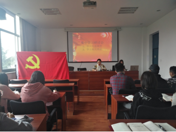 会上,由支部副书记王廷婷同志领誓,支部预备党员面向党旗庄严宣读入党誓词,党员同志重温入党誓词,这让同志们一同再次明确了自己的入党初心和动机。宣誓完毕,在支部书记王璇同志的带领下,支部学生党员们集中学习了《习近平关于“不忘初心,牢记使命”论述摘编》中的“十四个坚持”的具体内涵,王璇同志强调党员同志必须努力学习原文原著、革命精神、先进典型、党史国史。随后,支部党员们共同学习了先进典型人物张富清的光荣事迹,倡导学生党员们要学习张富清同志坚持党的领导、全心全意为人民服务的精神和他正确的荣辱观。