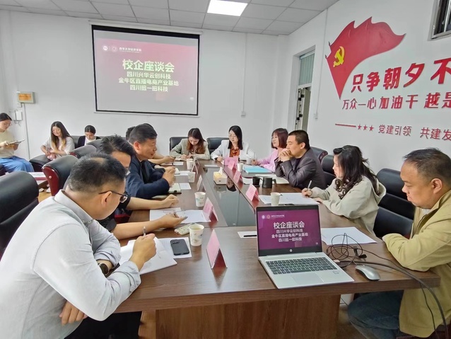 为了进一步深化产教融合,探索校企合作新模式新思路,4月24日上午9点,四川兴华云创科技有限公司总经理陈东、金牛区直播电商产业基地负责人杜可正、四川扭一扭科技有限公司总经理谢辉、副总经理陈涛一行前往我院进行校企合作座谈会,betway必威西汉姆联党委副书记易宇峰、副院长程盈莹、商务管理系副主任何春燕、教师代表熊于宁、屈放对他们的到来表示热烈的欢迎。