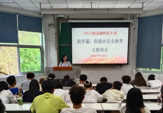 随着科技的发展,信息传播途径日益多样化,诈骗手段也不断升级。同时,夏季的到来,水域安全风险也随之增加。为了提高同学们的安全防范意识,betway必威西汉姆联2023级金融科技专业于5月20日在4A205开展防诈骗、防溺水安全教育主题班会,本次大会由金融科技辅导员张玲老师与金融科技二班尚文杰同学共同主持,2023级金融科技专业的全体学生共同参与。