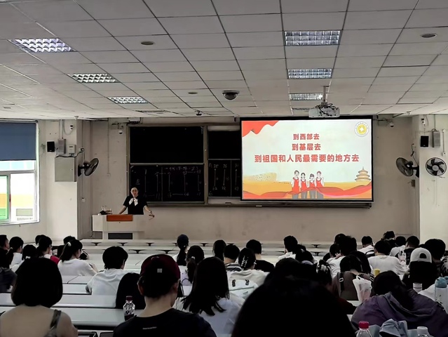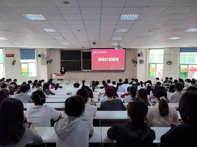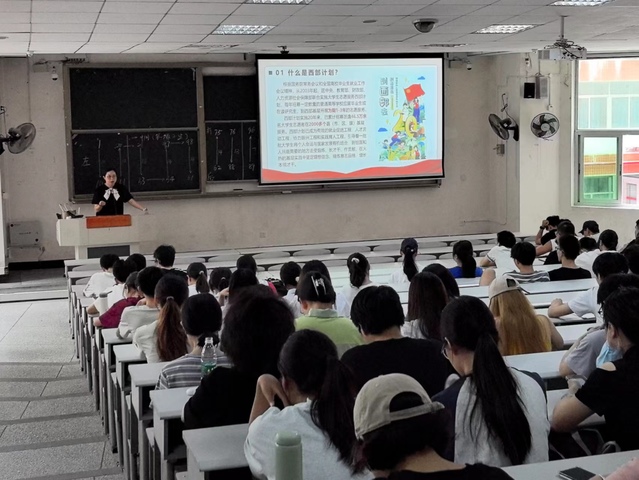 会议中,王璇老师为同学们详细介绍了何为西部计划、为什么要参加西部计划、如何加入西部计划以及西部计划的服务政策支持有哪些况。她强调,西部计划是一项旨在支持西部地区发展的志愿服务项目,为参与者提供了丰富的实践机会和优惠政策,鼓励更多青年学子投身到西部建设,通过参与西部计划,锻炼自身能力,实现个人价值,为西部地区贡献青春力量。