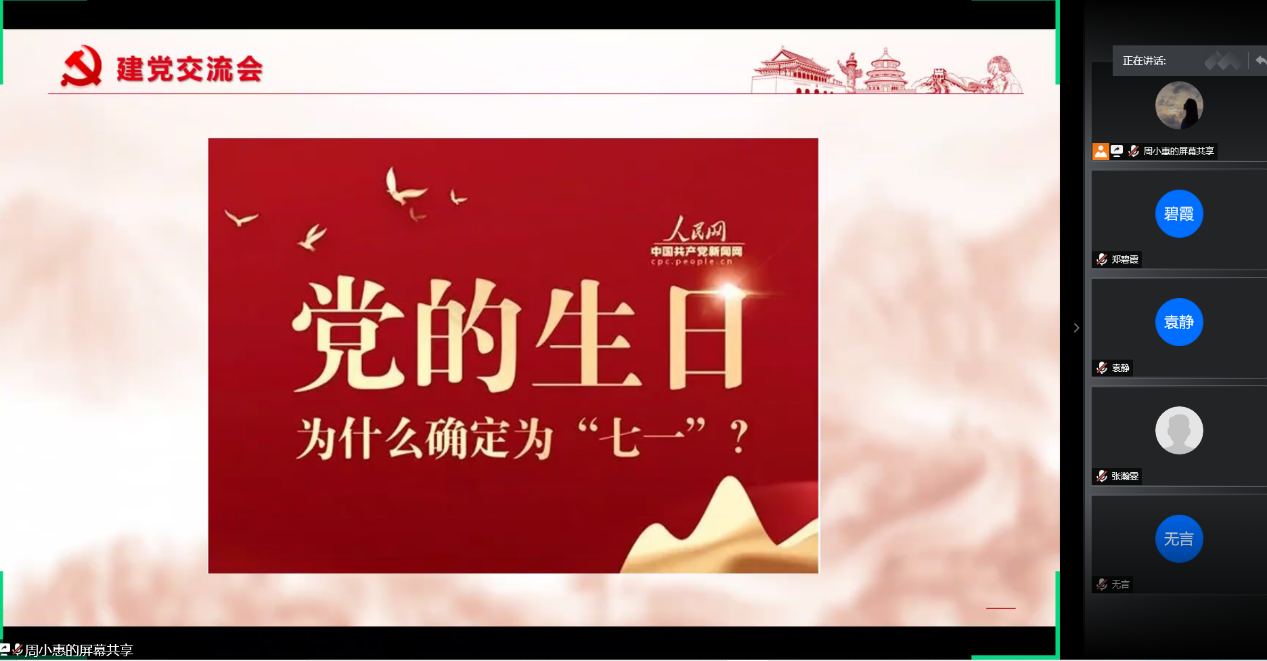学院各党支部的活动主要有:一是开展专题党课,重点学习了党章党规党史、《中国共产党支部工作条例(试行)》、《中国共产党党员教育管理工作条例》等有关文件和会议精神;二是开展建党主题党日活动,要求每位党员观看《建党伟业》《国家相册》等;三是完成党史知识竞赛,各党支部根据具体情况,通过线上或线下的方式举行党建知识竞赛,并在赛后交流心得体会;四是举办党员“政治生日”,围绕“入党为什么,在党做什么,为党留什么”以及“不忘初心,牢记使命”主题教育进行交流;五是建党主题交流会,支部书记为大家讲解“七一”建党日的由来,随后,全体党员就建党主题进行了深入探讨和交流。