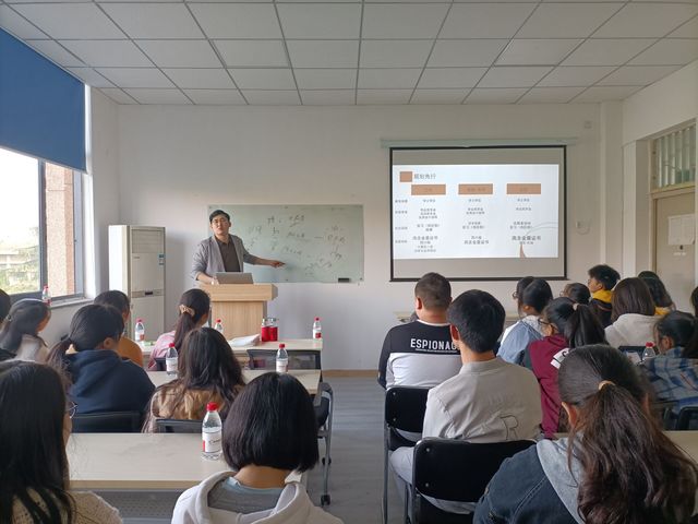 讲座中,刘红飞向同学们讲解了新环境下电子商务的市场环境和就业前景,并以华为和OPPO等公司招聘岗位人员要求为例,指出当代大学生在学习自身专业知识的同时还应进入专业岗位进行相应实习的必要性。随后,他通过实际就业数据分析,着重强调了具备综合就业能力的重要性,他希望同学们以提升自身专业素养和综合素养为目标,对未来做出更加全面具体的规划。最后,刘红飞与同学们展开了积极互动,热情地解答了同学们提出的疑惑。