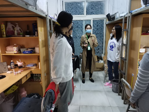 学院辅导员同权益部共同查寝并进行消防知识宣讲