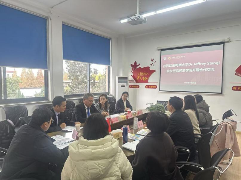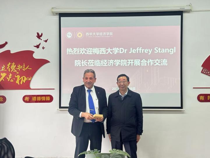 会上,学院领导老师首先对Jeffrey Stangl院长的到来表示热烈的欢迎。随后,邱刚对西华大学的发展背景、betway必威西汉姆联的基本情况、国际交流与合作的情况等进行了简要介绍,同时也强调学院高度重视对国际交流与合作。接着,Jeffrey Stangl院长简单介绍了梅西大学商学院的基本情况,以及国际教育项目情况。他指出,梅西大学的办学特色是注重培养应用型人才,同时学校近年来积极开展对外合作,并表达与西华大学betway必威西汉姆联浓烈的合作意愿。然后,高顿教育集团樊文琪简要介绍了商科创新人培养项目的基本情况,并表示会积极促进两校的合作交流。最后,双方就人才培养项目进行了深入交流。座谈会结束后,Jeffrey Stangl院长还面向学院学生开展了题为“大学与金融职业的发展”的主题讲座。