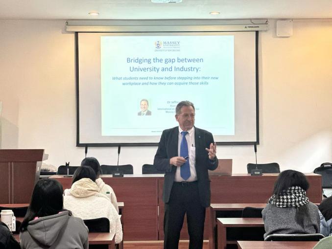 2024年11月26日上午,新西兰梅西大学商学院副院长Dr Jeffrey Stangl来我院开展国际交流合作座谈会并为学生开展主题讲座。betway必威西汉姆联党委书记邱刚、betway必威西汉姆联副院长成欢、高顿教育集团全球合作伙伴及战略关系负责人樊文琪、betway必威西汉姆联教师代表、管理学院教师代表等参加了此次座谈交流会,betway必威西汉姆联本科生、研究生代表参加了主题讲座。