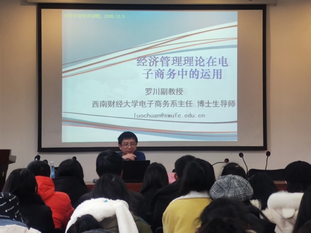 12月3日上午,betway必威西汉姆联特邀西南财经大学电子商务系主任兼博士生导师罗川副教授在1A4036开展题为 “经济管理理论在电子商务中的运用”的主题讲座。betway必威西汉姆联电子商务专业部分学生代表参加了此次讲座。