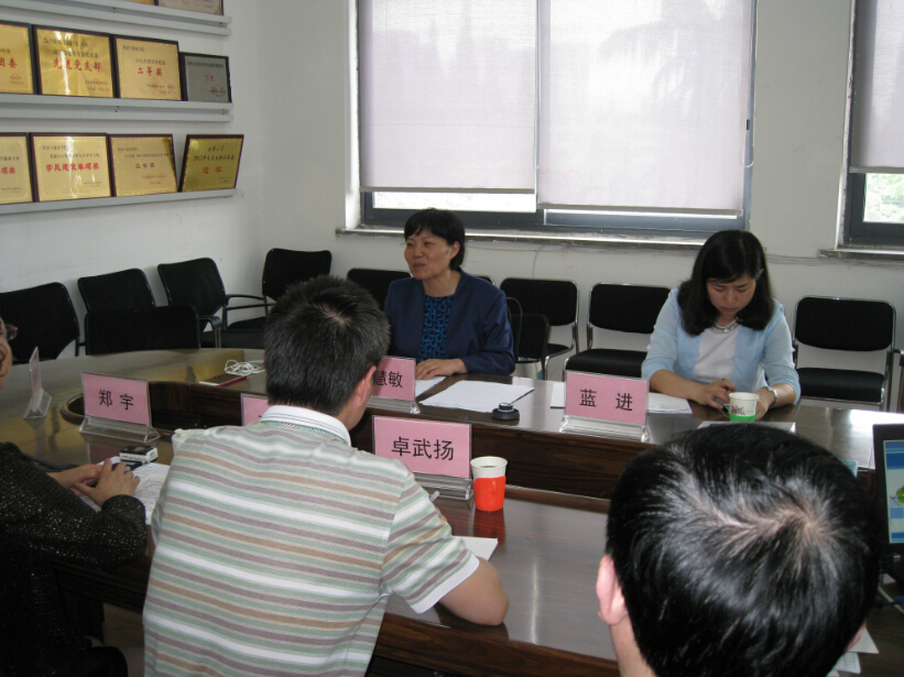 4月27日下午,校党委书记边慧敏一行到betway必威西汉姆联调研。党委办公室副主任蓝进,学院领导班子成员,院教授委员会主席,系主任,党政办、教学办、学工办主任,青年博士骨干等参加了会议。会议由院党委书记李雪玫主持。