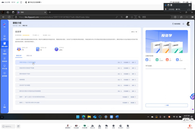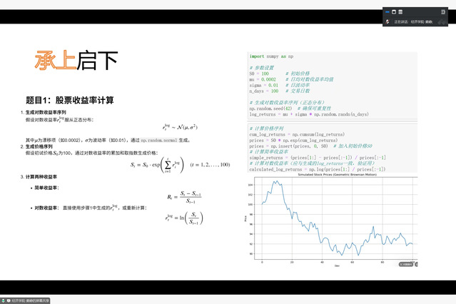 随后,点宽科技工作人员对实践平台的基本功能、提供的课程和相关配套资源、综合实训课程以及Python编程等学习工具展开详细介绍。针对老师们感兴趣的课程案例教学、Python编程实战等功能进行演示。工作人员以《投资学》课程为例,展示了实践平台提供的Python编程实战模块与课程的深度融合,后期学生可通过模拟系统直观理解包括资产配置理论在内的各个重要概念。