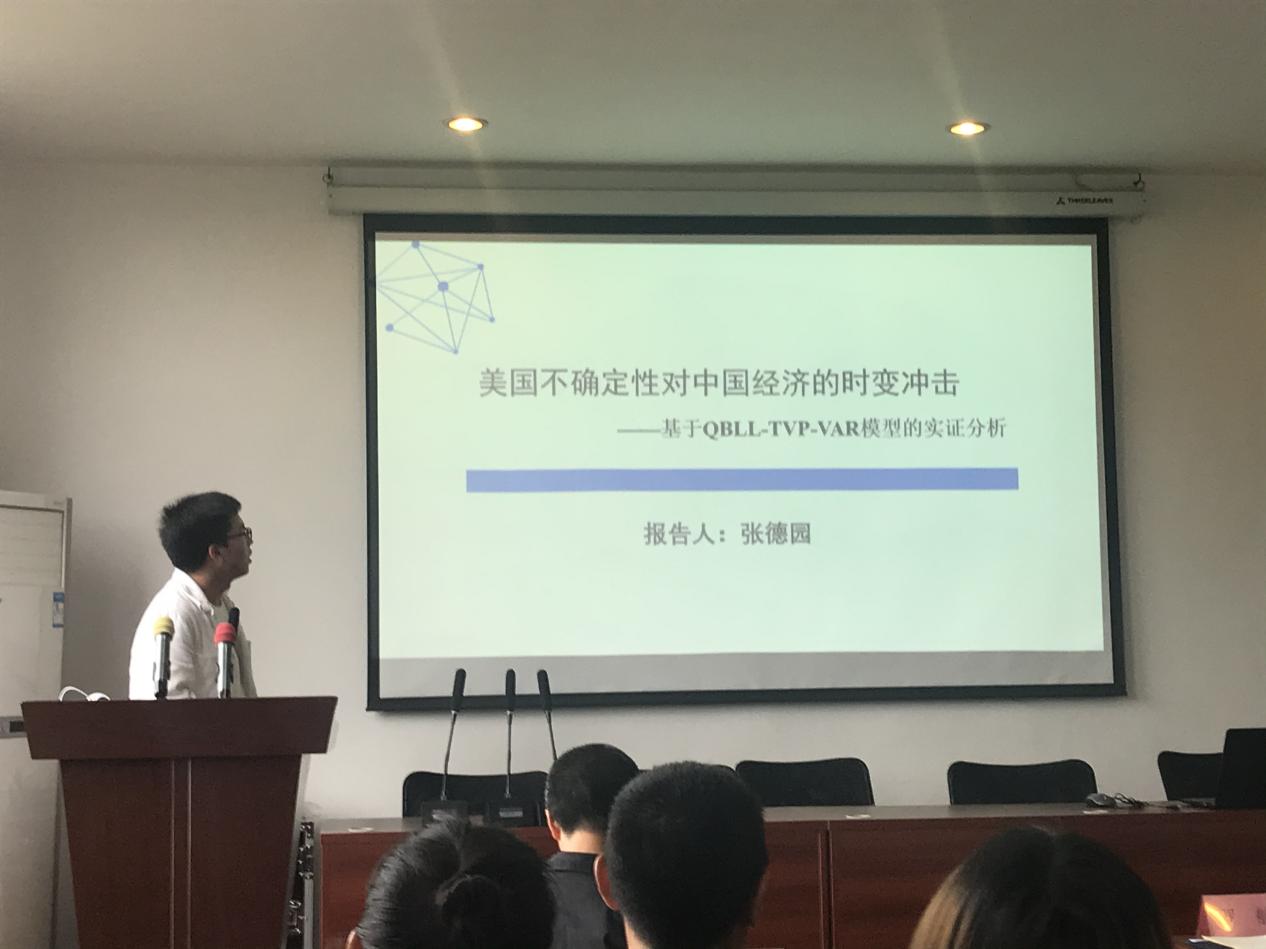 来自西华大学betway必威西汉姆联的张德园老师以“美国不确定性对中国经济的时变冲击——基于QBLL-TVP-VAR模型的实证分析”为题进行报告。文章通过构建拟贝叶斯局部似然估计的时变参数向量自回归(QBLL-TVP-VAR)模型实证分析了美国宏观经济、金融和经济政策三类不确定性对中国经济的动态影响及其差异。结果表明,在2008年全球金融危机期间美国金融不确定是导致中国经济波动的主要外部因素,而在2017—2020年美国宏观经济不确定性是导致中国经济波动的主要外部因素。