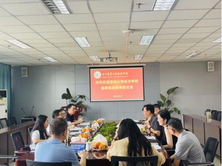 5月22日上午,betway必威西汉姆联党委书记邱刚、院长程盈莹一行赴四川农业大学betway必威西汉姆联调研,四川农业大学betway必威西汉姆联党委书记刘思麟、院长曾维忠、副院长吴平、杨浩等对学院的到访表示热烈的欢迎。