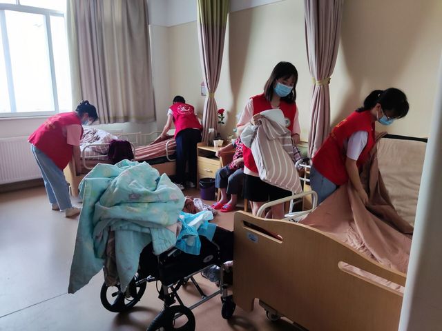 志愿者到达敬老院后,在积极配合进行来客登记以及防疫测控工作之后,积极帮助敬老院员工为老人们整理内务,更换床单与被套。紧接着,志愿者们为老人展示了准备好的歌舞表演,一起完成了有趣的折纸游戏。在此过程中,彼此相互陪伴,老人们真切地感受到了来自志愿者的关心,脸上洋溢着幸福的笑容,志愿者们也由衷的感觉到了幸福、开心。最后,志愿者们给敬老院的老人们送上了自己带的小礼物。