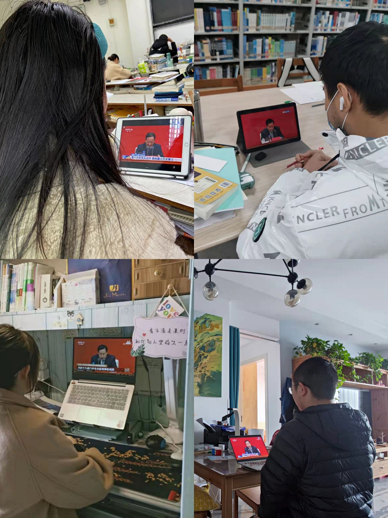 学院师生在图书馆、寝室、教室等场所分散观看学习