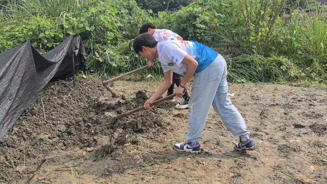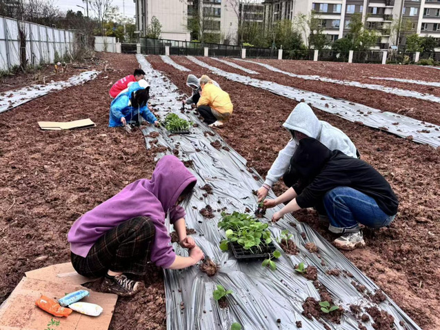 雨水浸润的田地泥泞难行,却阻挡不了党员们的步伐。覆膜、挖坑、栽苗……在农业专家的指导下,同学们累计完成覆膜28亩、栽苗8亩。“虽然浑身是泥,但心里特别踏实。”一名学生党员笑着表示,“从插秧到收稻再到春种,我们完整参与了生命的轮回,真正体会到了什么是‘脚下沾有多少泥土,心中就沉淀多少真情’。”