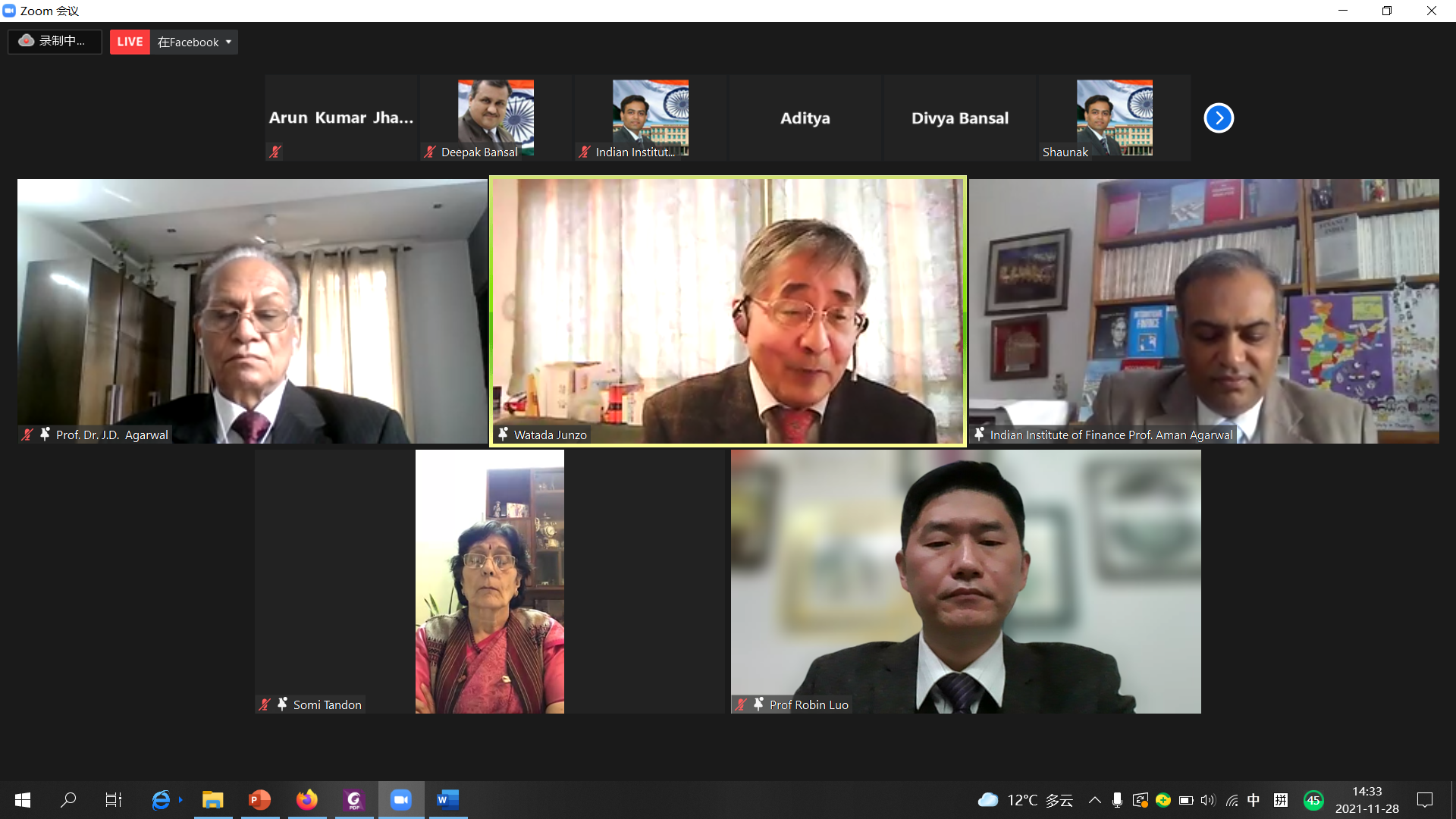 2021年11月27-28日和12月1-2日,由印度金融研究院(Indian Institute of Finance)主办的International Research Conference & Award Summit 2021国际学术会议通过在线方式顺利举行。会议由印度金融研究院院长J.D.Agarwal教授主持,来自46个国家、86所高校的500余名学者参加了本次学术会议,会议全程通过Facebook等主流媒体全球直播。