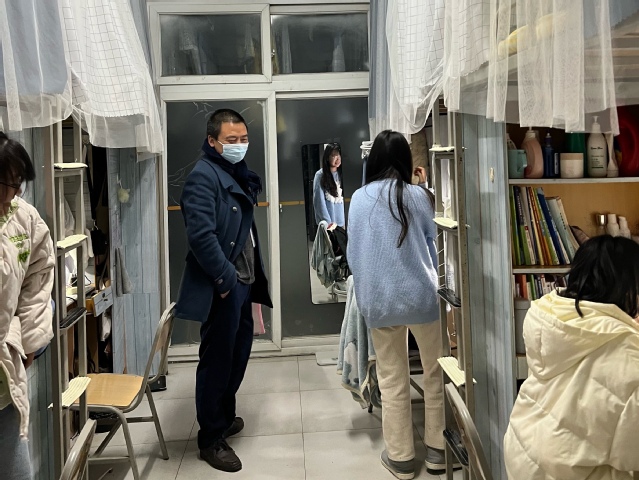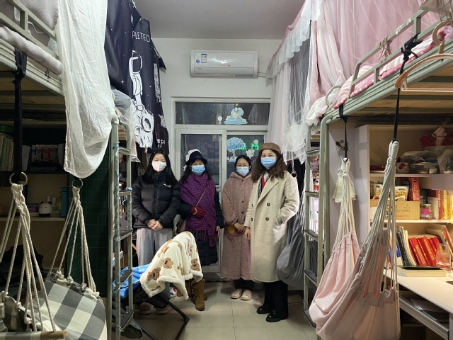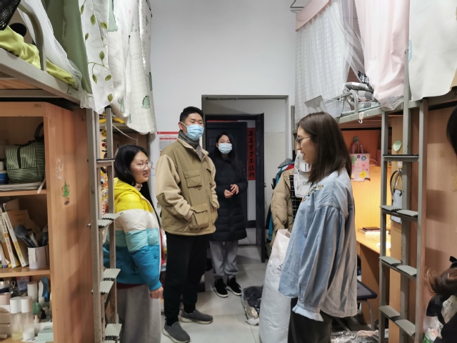 2月20日晚,罗航院长、王芳、罗莉老师一行三人前往临江苑部分寝室走寝。张玲、王璇老师二人前往德馨苑部分寝室走寝。在走访中,罗航院长与同学们进行了亲切交谈,询问了用水用电情况,叮嘱学生一定要时刻注意用电安全。罗院长介绍了学校针对疫情的防控措施,要求同学们疫情期间一定要遵守学校的相关规定,时刻保持疫情防控意识,在做好自身防护的同时尽快适应复课后的学习生活。2月21日晚,易宇峰书记、牛芳老师在老宿舍区进行走寝。受访宿舍卫生状况良好,易宇峰副书记对寝室布置整洁有序的同学进行了表扬,并提醒同学们要做好新学期学习规划与心理建设。同学们积极向各位老师分享了寒假学习生活经历、返校过程以及开学以来宿舍生活的感受。