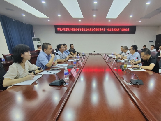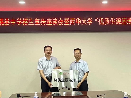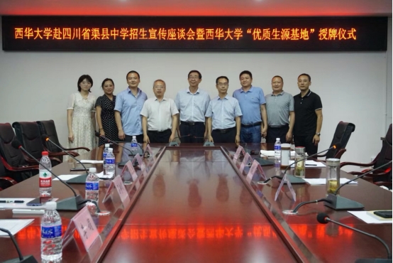 为积极发挥高校学科与人才培养优势,大力促进中学实施素质教育,进一步加强高校与中学的交流与合作,建立双方友好合作的长效机制,选拔、输送和共同培养优秀学生搭建更好的平台,6月21日,西华大学赴渠县中学进行招生宣传座谈会,双方就建立“西华大学优质生源基地”有关事宜达成协议,并举行“优质生源基地”授牌仪式。
