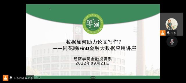 会议伊始,王蕊主任简单介绍了本次讲座主讲人的基本信息,强调此次讲座主要围绕如何利用同花顺iFinD金融平台来获取宏观层面、行业层面以及公司层面的各项指标,可为同学们毕业论文的写作提供精准、恰当的数据来源,是大家毕业论文的重要数据支撑。