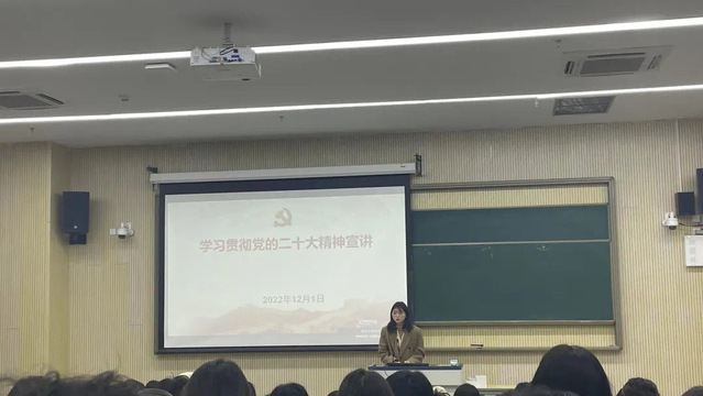 通过本次宣讲引领同学们学习了党的二十大会议报告精神,认识到当代中国青年生逢其时,施展才干的舞台无比广阔,实现梦想的前景无比光明。广大青年要坚定不移听党话、跟党走,怀抱梦想又脚踏实地,敢想敢为又善作善成,立志做有理想、敢担当、能吃苦、肯奋斗的新时代好青年,让青春在全面建设社会主义现代化国家的火热实践中绽放绚丽之花。