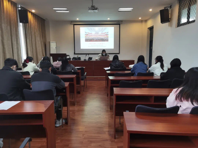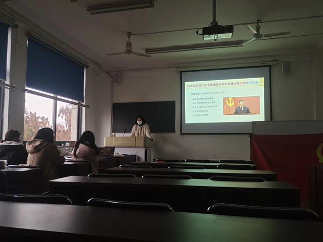 各党团支部书记从充分认识党的二十大的重大意义、关于新时代十年的伟大变革、关于开辟马克思主义中国化时代化新境界、关于“两个确立”的决定性意义、关于习近平新时代中国特色社会主义思想、新时代新征程上中国共产党的使命任务、对全面建设社会主义现代化国家作出的战略部署、对青年一代寄予殷切期望和关于党章修改9个方面,为同学们深入解读了党的二十大报告,讲述了对习近平新时代中国特色社会主义思想丰富内涵的理解和认识,结合各自的学习、实践和成长经历,讲述个人学习收获和心得体会,带领同学们共同学习党的二十大精神。