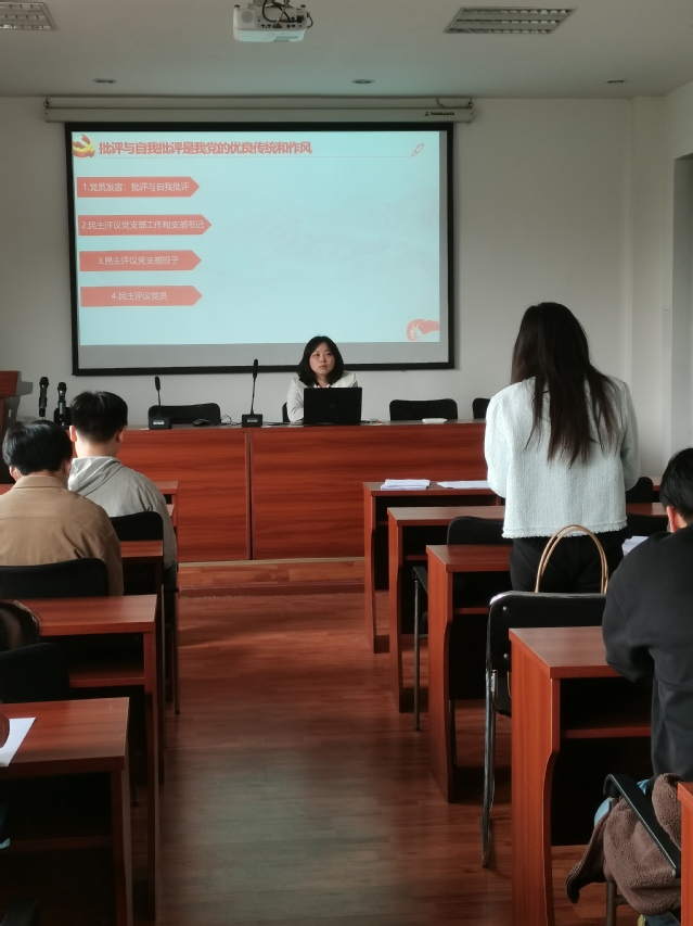 会议第三项,王璇同志主持进行民主评议,全体党员和预备党员总结自己的工作、学习和生活,从存在的不足出发进行自我批评,并提出了有针对性的改进措施。王璇同志总结了各位党员的发言,强调批评与自我批评是我党在长期革命和建设中形成优良传统和作风,是党增强生机与活力的一大法宝,她也对支部内的工作提出了建议,如党日活动缺少实践,注重形式,并表示后续将会以参观学习、走访调查的形式开展党日活动。