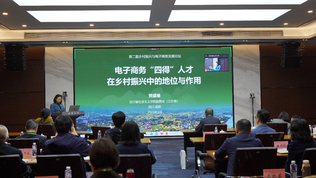 四川省乡村振兴促进会会长、原西华大学党委书记、教授边慧敏作《面向乡村振兴的电子商务人才培养》报告。她围绕电商人才培养助力乡村振兴的现实意义,电商人才培养推动乡村振兴的现实挑战,面向乡村振兴的电商人才培养现实路径等方面进行探讨,强调要重视发展乡村振兴电商商务人才培养。