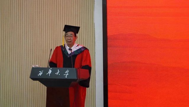 仪式第一项,党委书记邱刚致辞。他亲切寄语2023届毕业生,深情回顾了毕业生们在校期间的难忘瞬间,并表达了他对毕业生们的三点期望,一是期望他们脚踏实地、追求卓越;二是期望他们甘于奉献、勇于担当;三是期望他们热爱生活、宽容自信。并叮嘱道,西华的大门永远为大家敞开,要记得常回家看看。